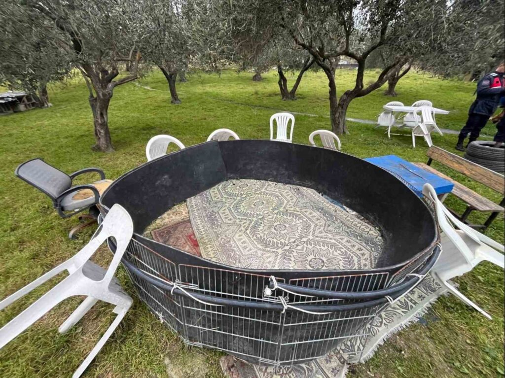 Akhisar ilçesi Mecidiye Mahallesi’nde şüpheli M.A. (65) isimli şahsa ait konteyner ve eklentilerinde 20 Aralık tarihinde yapılan aramada, 4 adet dövüş horozu ile birlikte horoz dövüşlerinde kullanılan ring ve tribün, çalar saat, terazi ve su sistemi ele geçirildi.